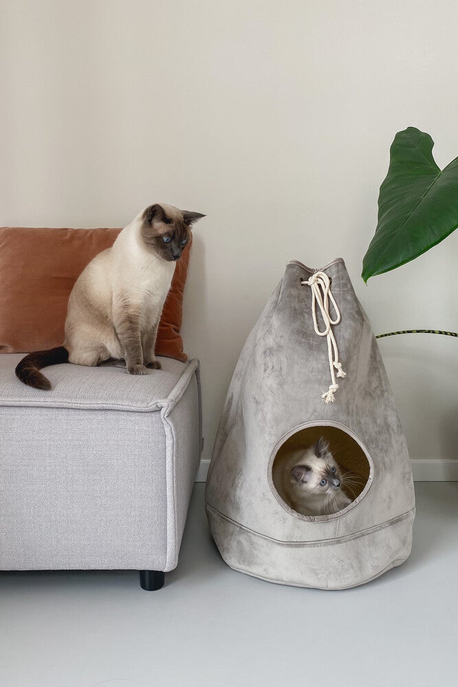 Het Designed by Lotte Vilar Kattenhuis is een mooi kattenhuis voor jouw kat. Het is leuk om jouw kat een eigen plekje te kunnen geven, maar het is nog leuker als dit plekje ook nog eens mooi staat bij jouw interieur. Bij het Vilar kattenhuis is dit zeker het geval. Dit kattenhuisje doet je misschien denken aan een tas, die je aan de bovenkant dicht maakt met een touwtje. Door het gat aan de voorkant kan jouw kat zijn huisje eenvoudig betreden. Het lekkere kussentje in het huisje, zorgt ervoor dat jouw kat hier heerlijk in kan leggen. Het kussentje is uitwasbaar op 30 graden in de wasmachine.