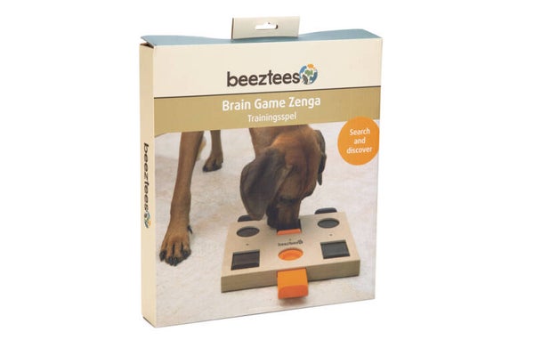 Met het Beeztees Zenga Trainingsspel wordt zowel het lichamelijke als geestelijke vermogen van jouw hond spelenderwijs uitgedaagd. Door iets lekkers in het spel te verstoppen, zal jouw hond worden uitgedaagd om dit te zoeken. Zenga bevat zes gaten waar je een lekkere snack in kunt stoppen. Jouw hond zal beweging in de schuiven moeten krijgen met zijn of haar poten of snuit om bij de beloning te komen. Door de beloning regelmatig op een andere plek in het spel te verstoppen, blijft het een leuke uitdaging voor jouw hond.