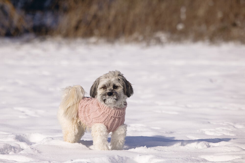 De Designed by Lotte hondentrui Haida is een ideale extra warmtebron voor jouw hond. Heeft jouw trouwe vriend geen dikke vacht van zichzelf en het snel koud? Of dient een wond te worden beschermd na een operatie? Dan is deze trui een ware uitkomst. Deze hondentrui van Designed by Lotte is naast het functionele gedeelte ook nog eens een waar mode item. De trui heeft een mooi gebreid patroon en een hoog opstaande kraag welke je kan oprollen naar het ideale comfort voor jouw vriendje. Is de rugzijde van deze trui zit een afgewerkt gaatje, zo kan je gemakkelijk een looplijn bevestigen aan de halsband of het tuigje. De Haida Hondentrui van Designed by Lotte is verkrijgbaar in 2 verschillende kleuren en 6 maten.