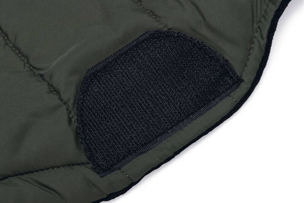 Designed by Lotte Hondenjas Zhanti is niet alleen heerlijk warm, maar ook nog eens waterbestendig. Het hondenjasje zit heerlijk comfortabel door de fluweel gevoerde binnenzijde. Het fluweel draagt er daarnaast aan bij dat jouw hond geen kou hoeft te lijden tijdens het wandelen. Het jasje is eenvoudig aan te trekken door het buikstuk naar de rug te halen, om deze vervolgens met klittenband vast te zetten op de rug. De waterdichte ritssluiting op de rug dient ervoor om hier een hondenriem doorheen te halen, die je vervolgens vastklikt aan de hondenhalsband of het hondentuig. Om het verschuiven van de hondenjas tegen te gaan, is het jaste voorzien van elastische beenbanden die om de achterpoten bevestigd kunnen worden. Jasje Zhanti is wasbaar op 30 graden.