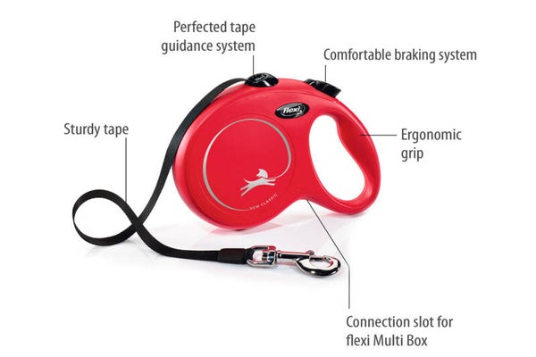 Doordat de Flexi New Classic Tape zo comfortabel is in gebruik, wordt het uitlaten van jouw hond nog leuker en gemakkelijker. Met deze Flexi kun je jouw hond voldoende gecontroleerde vrijheid kunt geven. De lijn kan op iedere gewenste afstand vast worden gezet, of bij een gevaarlijke situatie kun je direct ingrijpen door de rem in te drukken. Op die manier zorg je ervoor dat jouw hond niet verder kan lopen. De Flexi New Classic Tape kan worden uitgebreid met een Lightning System, zodat zowel jij als jouw hond ook in het donker makkelijk te zien zijn. Ook een Multi Box kan worden vastgeklikt aan deze Flexi, zodat je eenvoudig poepzakjes of koekjes voor jouw hond mee kunt nemen. Inclusief verchroomde haak zodat je de lijn vast kunt klikken aan een halsband of harnas.