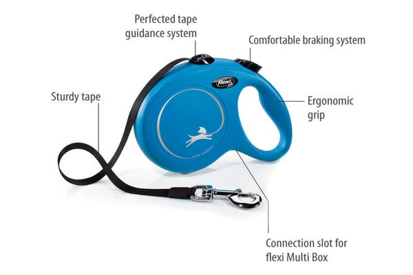 Doordat de Flexi New Classic Tape zo comfortabel is in gebruik, wordt het uitlaten van jouw hond nog leuker en gemakkelijker. Met deze Flexi kun je jouw hond voldoende gecontroleerde vrijheid kunt geven. De lijn kan op iedere gewenste afstand vast worden gezet, of bij een gevaarlijke situatie kun je direct ingrijpen door de rem in te drukken. Op die manier zorg je ervoor dat jouw hond niet verder kan lopen. De Flexi New Classic Tape kan worden uitgebreid met een Lightning System, zodat zowel jij als jouw hond ook in het donker makkelijk te zien zijn. Ook een Multi Box kan worden vastgeklikt aan deze Flexi, zodat je eenvoudig poepzakjes of koekjes voor jouw hond mee kunt nemen. Inclusief verchroomde haak zodat je de lijn vast kunt klikken aan een halsband of harnas.