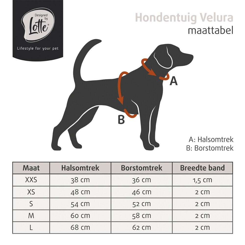 Vindt jouw hond het fijn om te wandelen met een tuigje? Dan is dit nieuwe Designed by Lotte Velura hondentuigje echt perfect. Naast dat het tuigje heel fijn zit, gaat jouw hond ook nog eens de straat op volgens de laatste trends. Het tuigje bevat een systeem wat ervoor zorgt dat het tuig zich aanspant wanneer de hond aan de lijn trekt. Dit tuig biedt de mogelijkheid om vooraf in te stellen hoe ver de druk wegvalt op het moment dat de hond niet meer aan de lijn trekt. Dit zorgt voor meer comfort op de momenten dat de hond loopt met een ontspannen lijn. Deze velvet tuigjes zijn heerlijk zacht en je kunt er eenvoudig een hondenriem aan bevestigen. Doordat de harnassen verkrijgbaar zijn in verschillende maten, is er altijd een geschikte maat voor jouw hond bij.