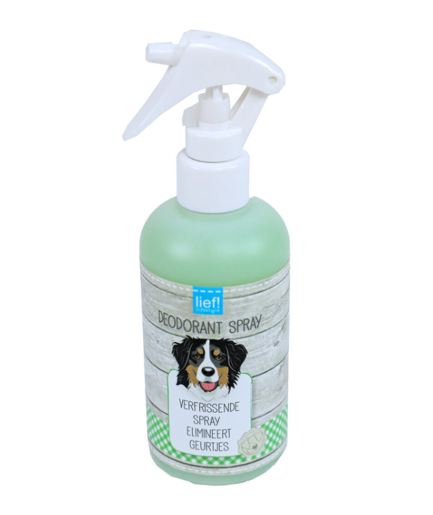 Lief! Deodorantspray van 250 ml is een lekkere geurspray met een mild karakter voor honden die onaangename geurtjes neutraliseert. De spray is voorzien van een heerlijk geurend parfum en kan zowel op de natte als droge vacht gebruikt worden, en is daardoor ook ideaal na bijvoorbeeld een wandeling in de regen. De spray heeft een PH-neutrale formule en is mild reinigend en is dus ook geschikt voor honden met een licht gevoelige huid.